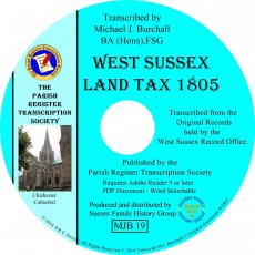 Land Tax began in 1692/3 and was made permanent by statute in 1798. It was a tax on personal property including land, houses, shops, wharfs, woods, meadows, mills, tithes, glebes and salaries. The Owner, Occupier and Rental, parish by parish have been transcribed by Michael Burchall from the handwritten returns at West Sussex Record Office and are indexed with a useful historical Introduction.